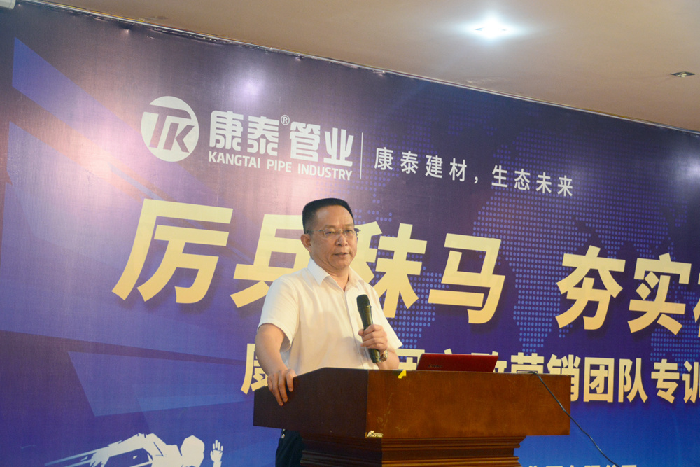 市政總監(jiān)何朝暉就此次培訓的目的作了三點闡述,一是受國際國內(nèi)市場環(huán)境,新冠疫情影響,塑膠管道行業(yè)的改革和調(diào)整勢在必行。公司根據(jù)這些變化及時做出戰(zhàn)略和結(jié)構(gòu)上的調(diào)整是及時和正確的;二是目前中國塑料管道行業(yè)產(chǎn)能嚴重過剩,塑膠管道市場也正向有技術(shù)、有產(chǎn)品、有品牌知名度的企業(yè)集中。加之未來幾年國家將不斷加大在市政基礎(chǔ)設(shè)施領(lǐng)域的投入,這對康泰來說是機遇,也是突破;三是本次培訓就是撈干貨,徹底講清楚講透徹我們的市政五大產(chǎn)品系統(tǒng),打造“差異化”產(chǎn)品,搶單殺單。希望市政銷售團隊全體精英要認真領(lǐng)會培訓的目的和意義,努力提升自己,上下打通。
