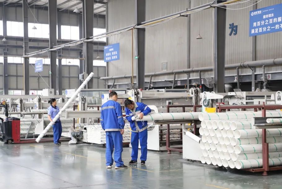 在康泰的PVC管件車間內(nèi),員工楊進(jìn)福正進(jìn)行日常的貨物抽檢和機(jī)器設(shè)備調(diào)試?!耙驗榈侥甑琢耍性S多前期訂單要完成,還要滿足公司每年的生產(chǎn)計劃,所以這段時間我們都比較忙,人和機(jī)器都在不停工作?!睏钸M(jìn)福說。