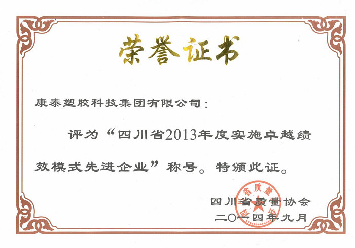 ?????? 卓越績(jī)效模式是80年代后期美國(guó)創(chuàng)建的一種世界級(jí)企業(yè)成功的管理模式,其核心是強(qiáng)化組織的顧客滿意意識(shí)和創(chuàng)新活動(dòng),追求卓越的經(jīng)營(yíng)績(jī)效,引導(dǎo)企業(yè)持續(xù)改進(jìn),是不斷提升企業(yè)管理水平和綜合競(jìng)爭(zhēng)能力的有效途徑??堤┘瘓F(tuán)自2009年開(kāi)始申報(bào)“省實(shí)施卓越績(jī)效模式先進(jìn)企業(yè)”以來(lái),連續(xù)六年獲此殊榮,實(shí)現(xiàn)了康泰集團(tuán)質(zhì)量管理目標(biāo)。