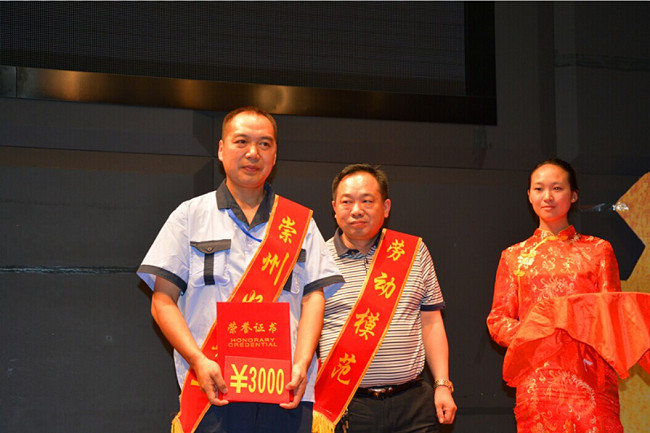 ??? 6月27下午,“崇州好職工”頒獎(jiǎng)儀式在崇州市文化館舉行,我公司工會(huì)主席吳彬及攜生產(chǎn)中心24名工人代表出席了頒獎(jiǎng)典禮,為陳定平同志鼎力喝彩!