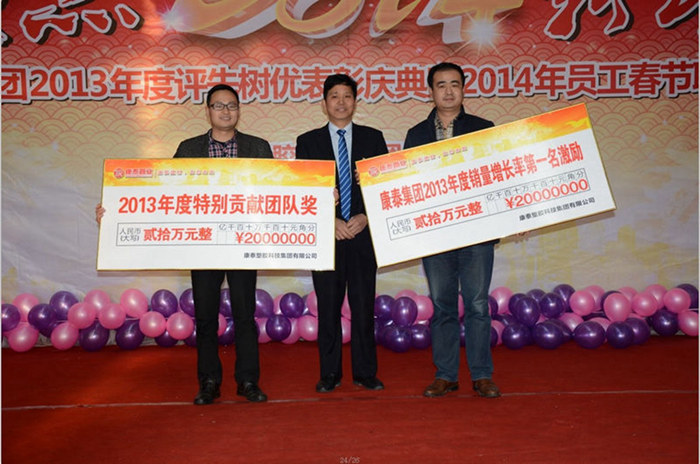 ??? 會(huì)議最后,集團(tuán)董事長(zhǎng)兼總裁林云青先生發(fā)表新年寄語(yǔ),林總裁首先對(duì)獲獎(jiǎng)的員工表示了祝賀,對(duì)還有很多沒(méi)有獲獎(jiǎng)的默默付出的優(yōu)秀員工、對(duì)全體康泰員工2013年付出的辛勤努力表示感謝,林總裁表示:“時(shí)光飛逝,白駒過(guò)隙,2013年已經(jīng)過(guò)去,在白熱化的市場(chǎng)競(jìng)爭(zhēng)和房產(chǎn)打壓的影響下,我們?nèi)w康泰人不斷探索,尋找屬于我們的方向,我們公司全力以赴,建立了獨(dú)特的推廣營(yíng)銷(xiāo)模式,通過(guò)一區(qū)一策的營(yíng)銷(xiāo)管理理念,通過(guò)全員的共同努力,全面完成了20%增長(zhǎng)的年度經(jīng)營(yíng)目標(biāo),并基本全面完成公司的各項(xiàng)指標(biāo),這是公司全體員工共同努力才取得的結(jié)果,我代表公司股東、董事及管理團(tuán)隊(duì)衷心的感謝你們,希望全體康泰人在新的一年里,繼續(xù)保持務(wù)實(shí)勤儉、高效干練的先鋒工作作風(fēng),在新的一年里實(shí)現(xiàn)更大突破,取得更大成功?!?br>
