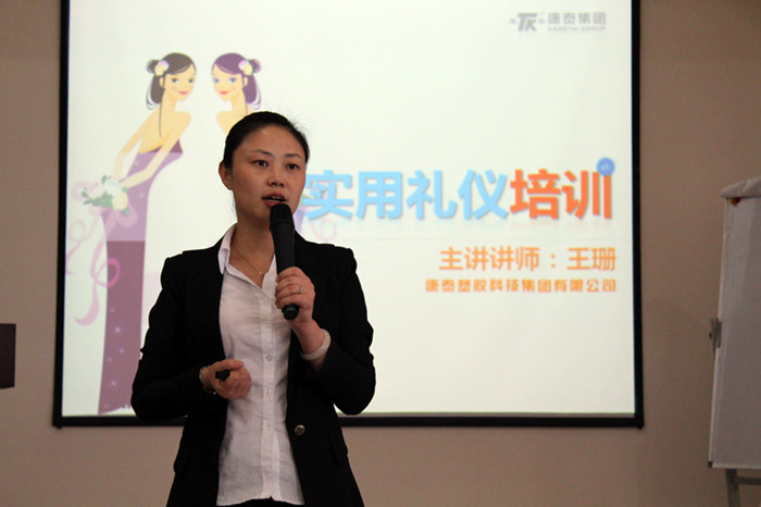 ??? 此次培訓(xùn)由營銷中心副主任王珊擔(dān)任講師。課程一開始,王老師指出禮儀是一種在人與人交往中的行為準(zhǔn)則和規(guī)范,是互相尊重的需要,其中表達(dá)尊重是目的,而規(guī)范是方法。她一邊播放圖文并茂的PPT教材,一邊講解學(xué)習(xí)禮儀的意義、禮儀文化、標(biāo)準(zhǔn)禮儀行為等內(nèi)容,并針對學(xué)員的崗位工作,著重介紹了商務(wù)禮儀。課上,王老師常常與大家分享日常工作中遇到的事例,用易于學(xué)員們理解的方式,輕松愉快地傳授新知識,使課堂氣氛保持活躍,而歷時兩個半小時的培訓(xùn)在熱烈的掌聲中圓滿結(jié)束。