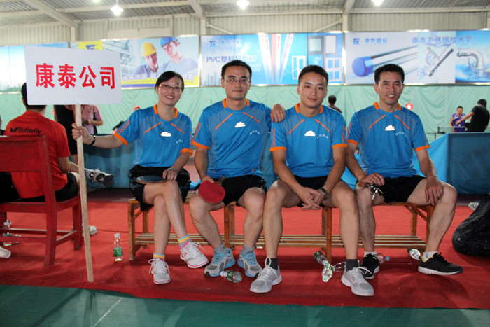 ??? 2013年9月14日,“泰江蘭庭杯”乒乓球賽在老廠區(qū)俱樂(lè)部舉行。本次乒乓球賽有“泰江蘭庭”、“康泰公司”、“國(guó)稅局”、“風(fēng)景管理局”、“廖家中學(xué)”、“老年一隊(duì)”、“老年二隊(duì)”、“崇陽(yáng)鎮(zhèn)”等總共33支代表隊(duì)參加了此次比賽。公司員工王成城、呂旭梅、段繼忠、薛有建代表康泰參賽。