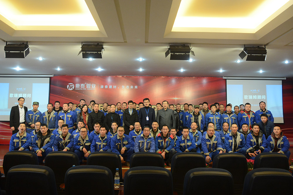 1月 11日下午,康泰集團TPM項目結(jié)題大會在五樓多功能會議室召開。歌瑞姆管理技術(shù)服務(wù)有限公司董事長后小進、顧問劉大永,以及康泰集團副總裁張文霖,總裁助理張勇,生產(chǎn)中心副總監(jiān)李志堅,各車間主任、副主任、班組長、TPM項目組成員等80余人參加會議。