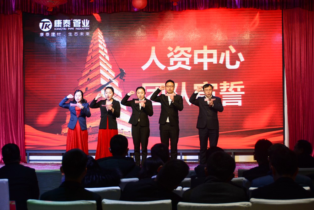 13時許,會議在雄壯嘹亮的《國歌》和《康泰之歌》中正式啟幕。大會共有五項議程分別是,對2018年的工作總結(jié)暨2019年度經(jīng)營規(guī)劃、表彰2018年度先進個人和集體、舉行迎春文藝匯演、母公司各中心宣誓、聽取董事長對2019年的總體規(guī)劃和展望。